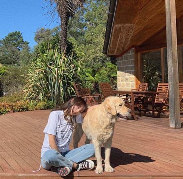 Clara accompanied by her faithful pet "Tequila" and on a walk on a fresh autumn morning